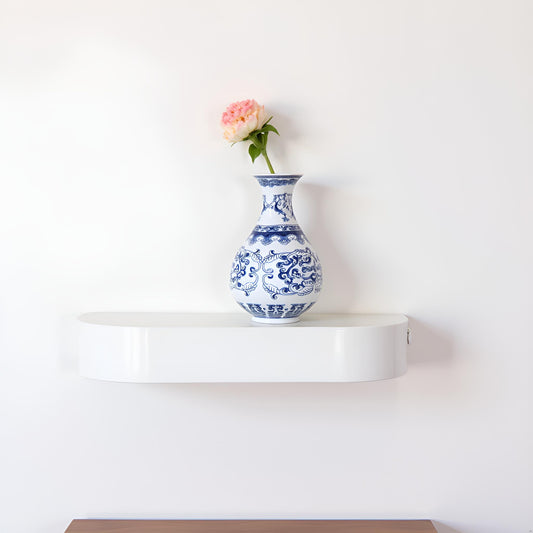 Blue and White Ceramic Vase with Classic Floral Oriental Pattern
