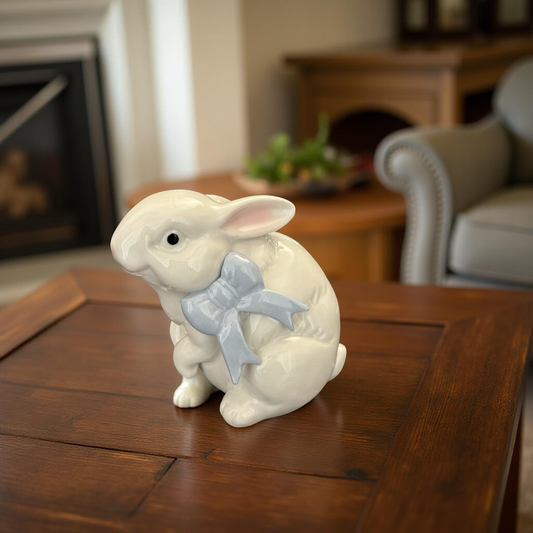 Delightful Ceramic Bunny Figurine with Blue Bow