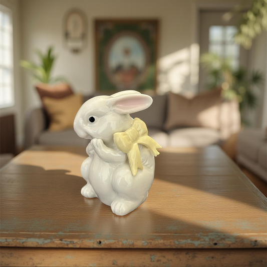 Delightful Ceramic Bunny Figurine with Yellow Bow