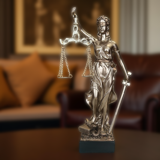 Elegant Blind Justice Statue – Legal Scales and Sword Figurine