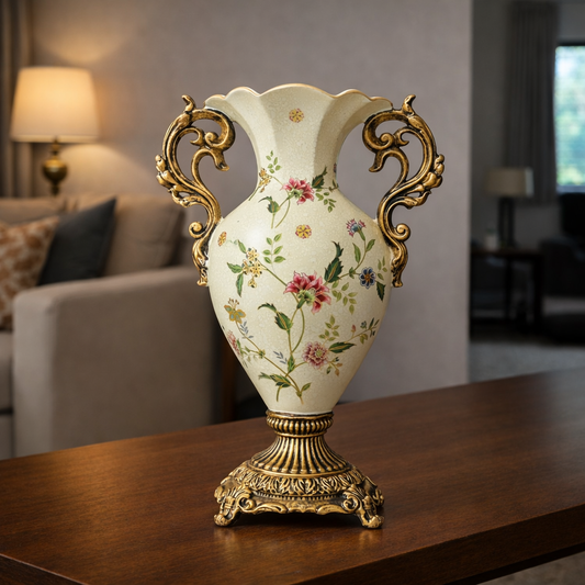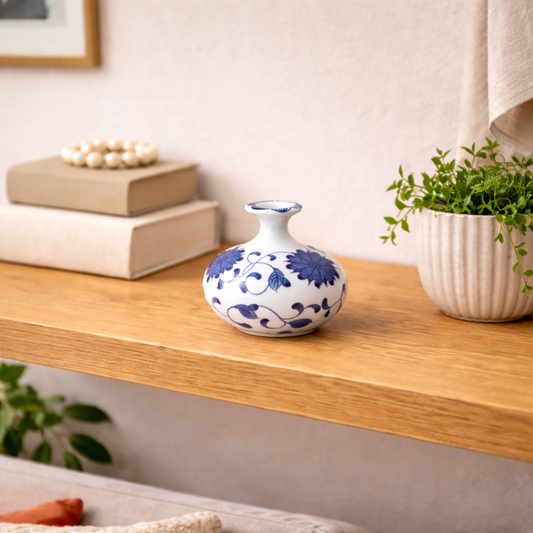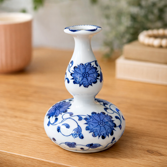 Blue and White Ceramic Vase with Classic Floral Oriental Pattern