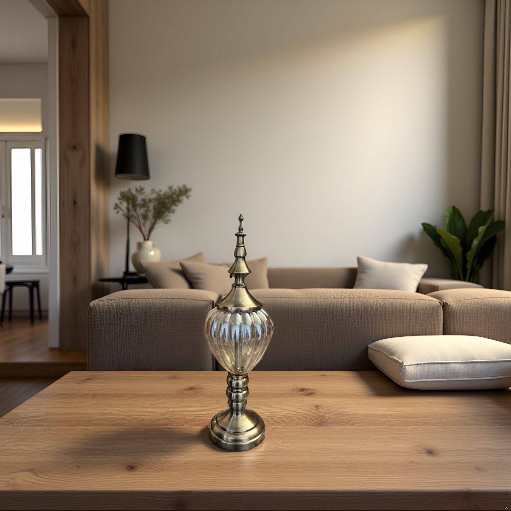 A sophisticated brass and glass décor accent, making it a perfect gift for housewarmings, anniversaries, and festive occasions.