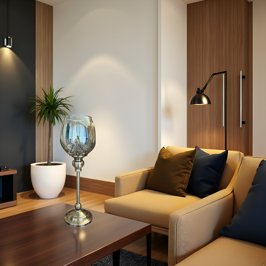 Elevate your space with this Elegant Glass Candle Holder featuring a sleek metal stand. Its daring design blends transparency with bold metallic accents, making it a striking focal point. Perfect for those who want to add a touch of fearless sophistication and ambient glow to any room.