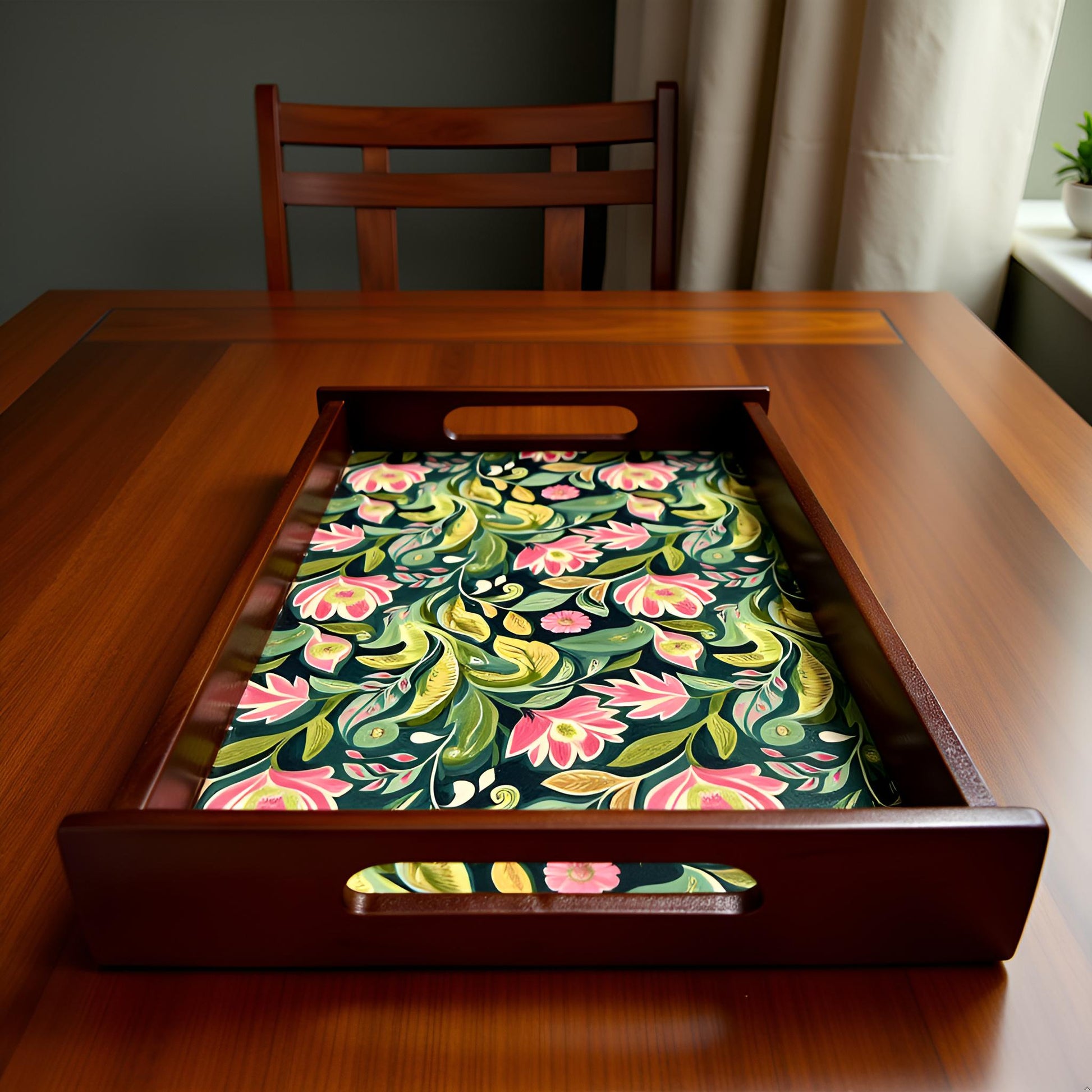 Emerald Petals Collection - Small rectangular Tray Dare to elevate your everyday moments with this striking small rectangular tray. Featuring a bold emerald aesthetic that commands attention, it transforms ordinary surfaces into curated displays of style. Perfect for corralling essentials on your nightstand, desk, or vanity, this tray merges function with fearless design. Whether you're organizing jewelry, keys, or decorative objects, its compact form makes a powerful statement without demanding space. A rebellious touch for those who refuse to blend in.