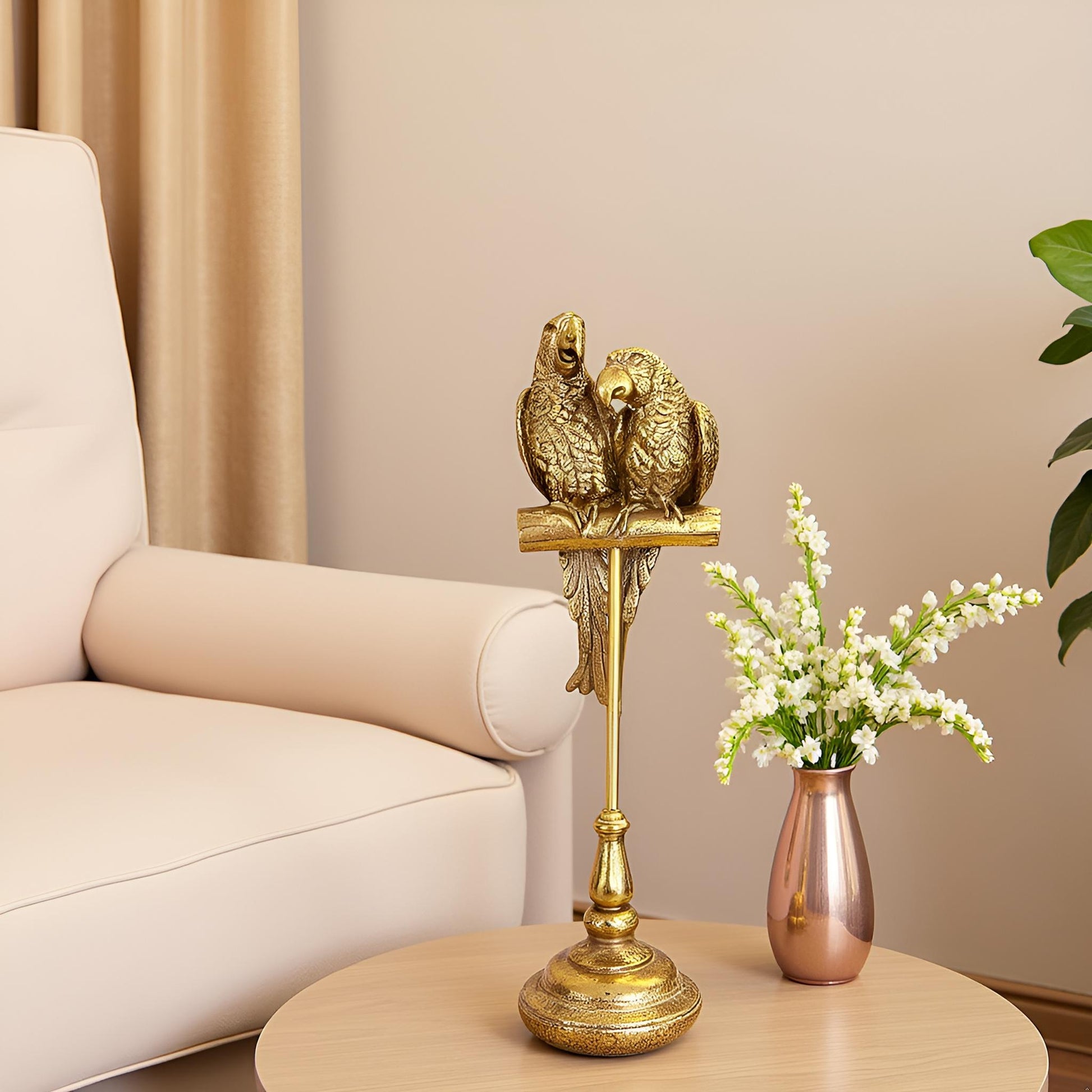 Elevate your décor with the striking Golden Parrot Figurine. This bold bird statue perched confidently on its stand commands attention, bringing a fearless and vibrant energy to any space. Crafted to captivate, it’s a daring statement piece that sparks conversation and adds a splash of golden brilliance to your home or office.