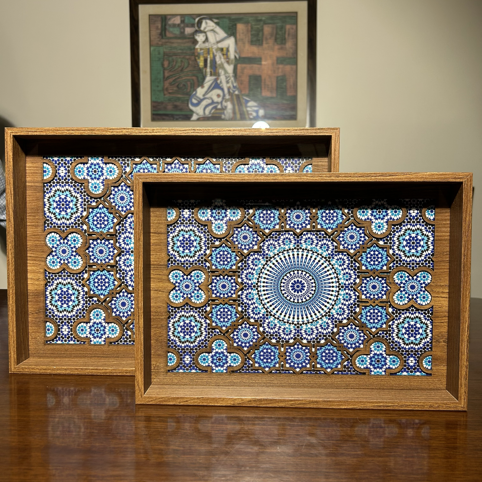 Elevate your serving game with this handcrafted wooden tray featuring a bold blue tile mandala design. Its striking artistry commands attention, making every meal feel like an occasion. Perfect for kitchen or dining, this tray blends durability with fearless style to transform your space. Serve with confidence and make a statement.