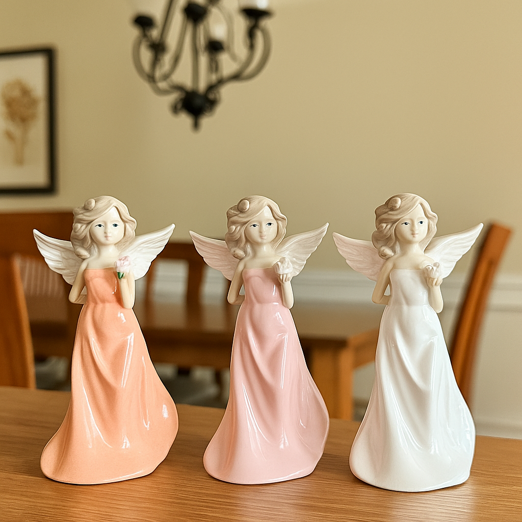 Grace your home with the serene beauty of this exquisite porcelain angel figurine, featuring delicate white wings, soft blonde curls, and a flowing white gown. Holding a gentle flower in one hand, this angel embodies purity, peace, and elegance. Perfect as a decorative centerpiece, spiritual keepsake, or heartfelt gift, it adds a touch of heavenly charm to any room, especially during festive seasons or moments of reflection.